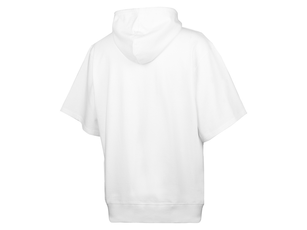 Худи с коротким рукавом выполнено из хлопкового френч терри с петельками на изнаночной стороне. Подкладка капюшона выполнена из основного полотна для объемной посадки. Модель комфортной и актуальной посадки оверсайз отлично подходит для обычной жизни и в качестве промо мерча.
