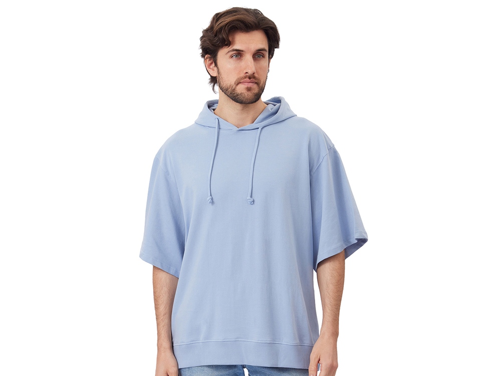 Худи с коротким рукавом выполнено из хлопкового френч терри с петельками на изнаночной стороне. Подкладка капюшона выполнена из основного полотна для объемной посадки. Модель комфортной и актуальной посадки оверсайз отлично подходит для обычной жизни и в качестве промо мерча.