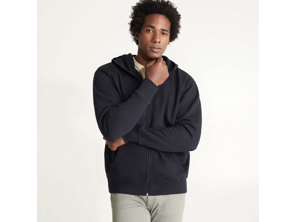 Толстовка на молнии с капюшоном. Риб 2х2 по манжетам, низу изделия, а также кармане кенгуру и крае капюшона.