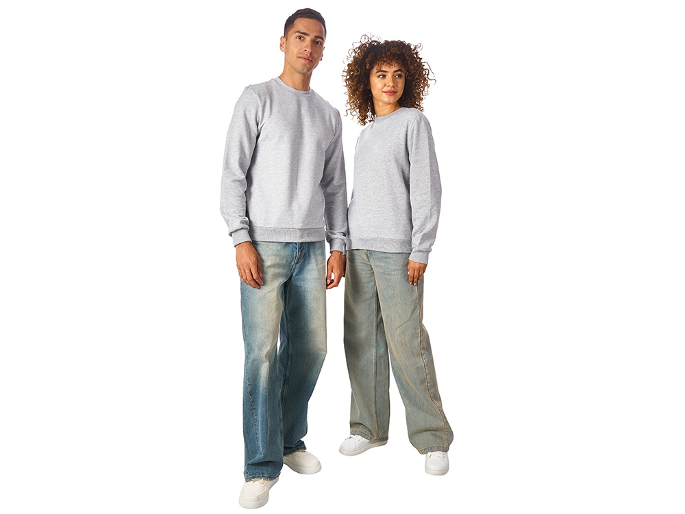 Свитшот из плотного 3х ниточного хлопкового футера. Горловина, манжеты и низ отделан рибом 2х2. Горловина спинки внутри дополнительно укреплена тесьмой с выработкой елочка. Полотно из утяжеленного хлопкового футера внутри с петельками без начеса.