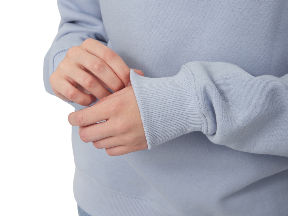 - резинка по горловине, рукаву и низу свитшота для комфортной посадки