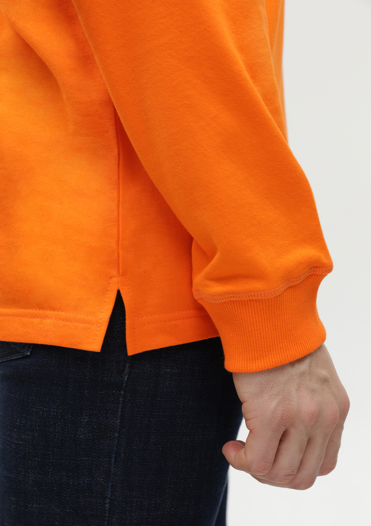 Модель выполнена из плотного хлопкового футера, который хорошо удерживает тепло, обеспечивая комфорт в прохладную погоду. Материал устойчив к механическому воздействию и вытяжению, практически не поддается пилингу.