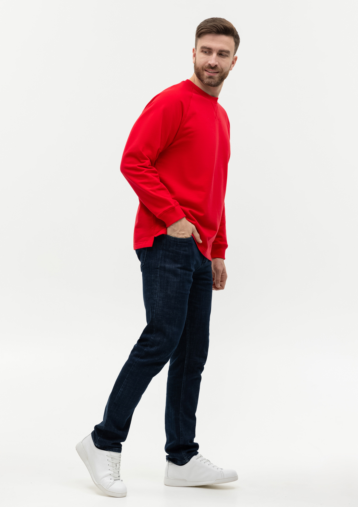 Модель выполнена из плотного хлопкового футера, который хорошо удерживает тепло, обеспечивая комфорт в прохладную погоду. Материал устойчив к механическому воздействию и вытяжению, практически не поддается пилингу.