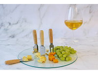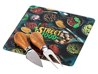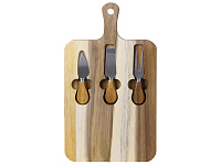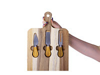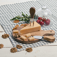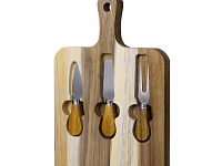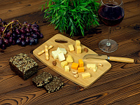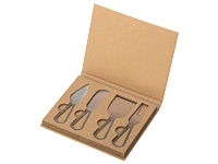 В наборы для сыра, как правило, входит несколько ножей (для масла, топорик, листовидный и т.д.), вилка и подставка. Брендируются обычно подставки и рукоятки столовых предметов.
