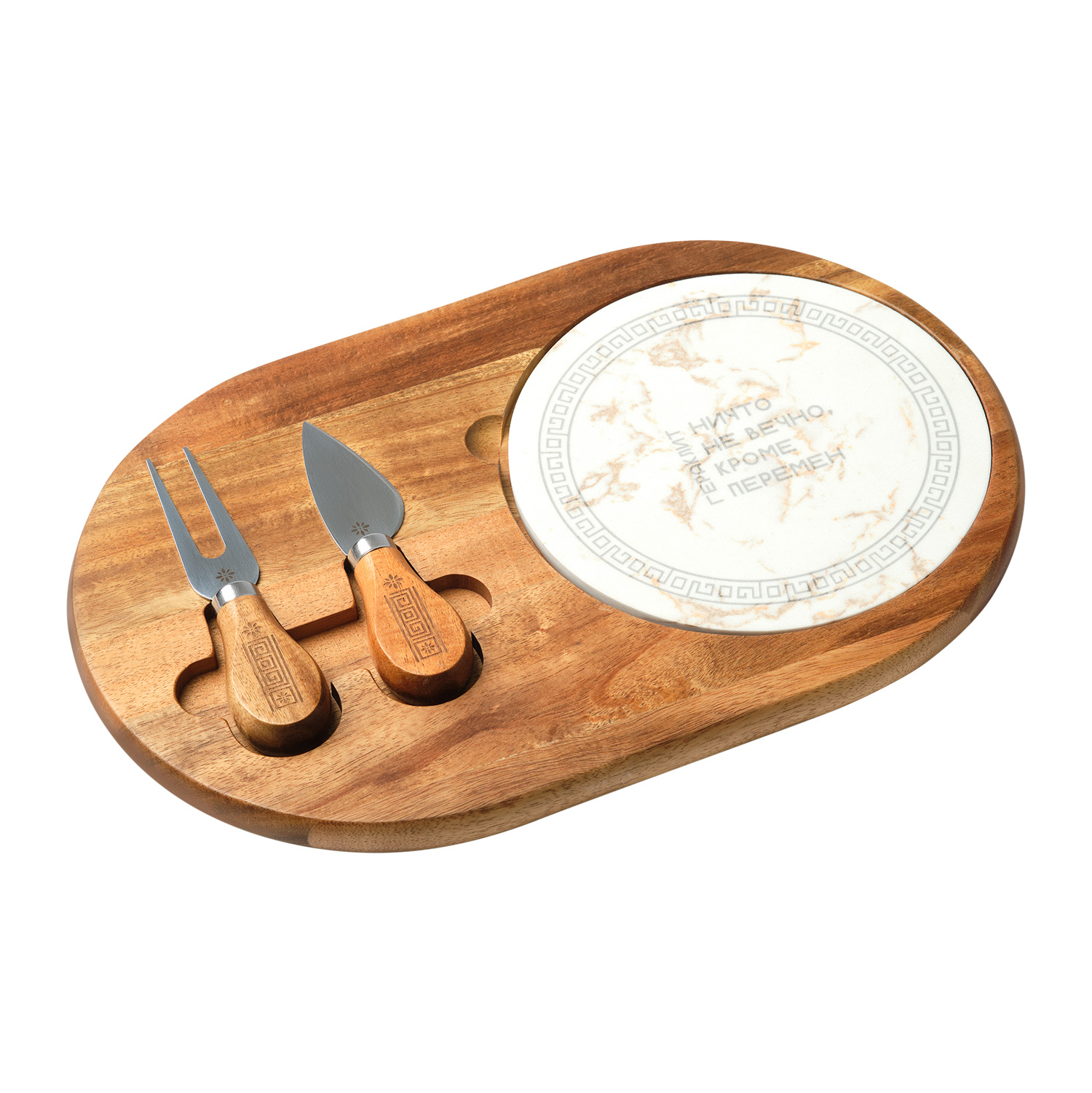 Набор предназначен для сервировки сыров и других закусок. Он станет прекрасным украшением стола и поможет создать атмосферу уюта и романтики.