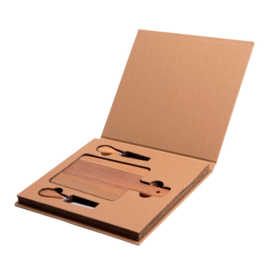 Набор для сыра: прямоугольная доска с ручкой и два инструмента в комплекте - нож для мягкого сыра и вилка.Лезвия ножей выполнены из высококачественной нержавеющей стали.Доска выполнена из экологически чистого и прочного материала — древесины акации. Она обладает высокой твердостью, водоотталкивающими свойствами и не впитывает запахи.Набор для сыра пригодится как для нарезки, так и для сервировки. Индивидуальная упаковка - коробка из крафтового картона с ложементом -
