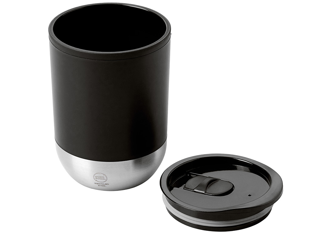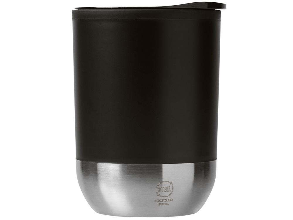 Термокружка с двойными стенками из переработанного полипропилена и дном из нержавеющей стали 304. В комплекте крышка-слайдер. Объём: 290 мл. Поставляется в экологичной коробке. -