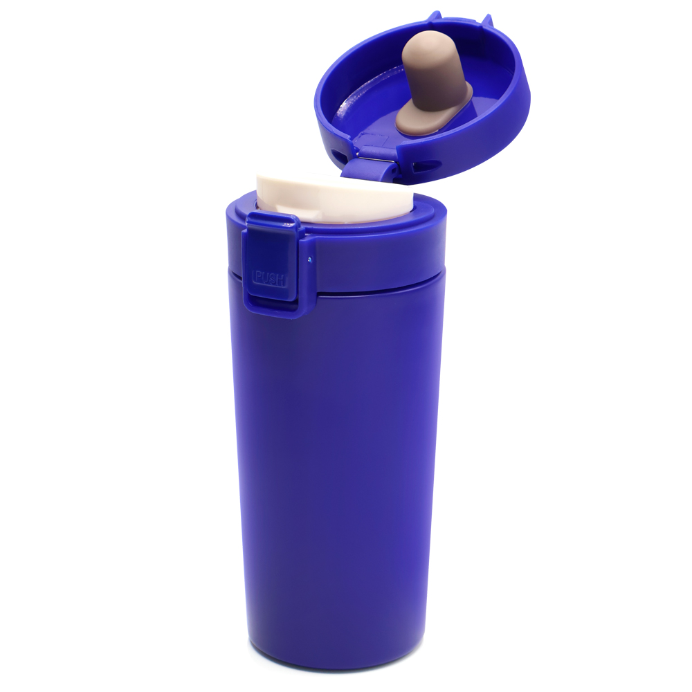 Модная и современная термокружка AMATTO для практичных покорителей городских и загородных ландшафтов! Крышка данного типа позволяет перемещать любимые напитки в салоне авто без досадных проливаний во время поездки. Именно благодаря данному специальному механизму термокружка полностью герметична. Крышка легко открывается нажатием кнопки, также имеется блокиратор от случайных нажатий. Для удобства использования имеется защищенное от воздействий внешней среды питьевое отверстие и ситечко. Полуматоваое покрытие выгодно отличает эту кружку от всех остальных моделей! Цвет кружки максимально приближен к пантону Reflex blue C pantone- Виды нанесений: Гравировка CO2-А2, Гравировка Круговая - CO2, Тампопечать большая, УФ-печать А2, УФ - DTF, УФ-Лак, УФ-Цвет+Лак
