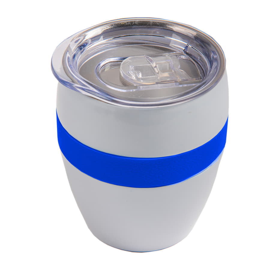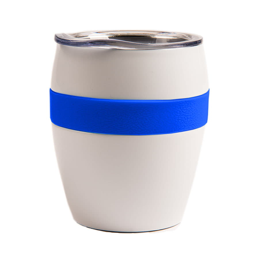 Термокружка LINE с двойными стальными стенками сохранит напиток горячим до 3х часов, холодным - до 4х часов.Благодаря форме удачно лежит в руке, и за счет резинового браслета не скользит. Высота без крышки 9,7 см, подходит для большинства кофемашин. -