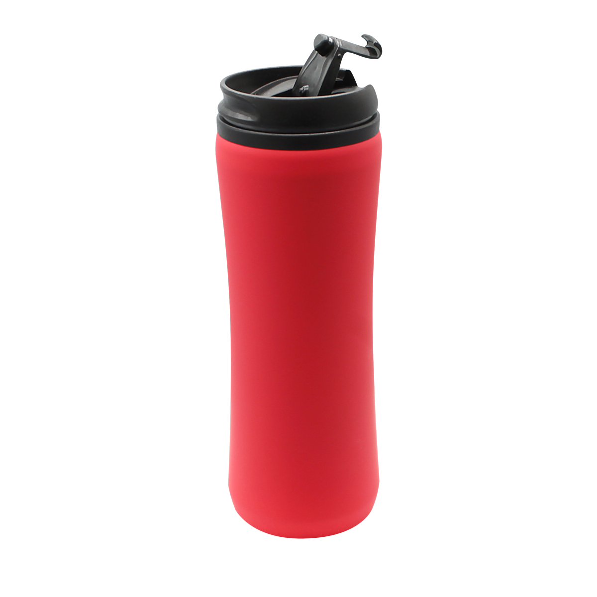 Термокружка изготовлена из нержавеющей стали с покрытием софт тач. Внутренняя колба сделана из пластика. Вакуумная конструкция. Откидной клапан позволяет пить, не снимая крышку, что помогает дольше сохранить начальную температуру напитка. Объем термокружки – 500 мл.- Виды нанесений: Гравировка CO2-А2, Гравировка Круговая - CO2, УФ - DTF, УФ-печать А2