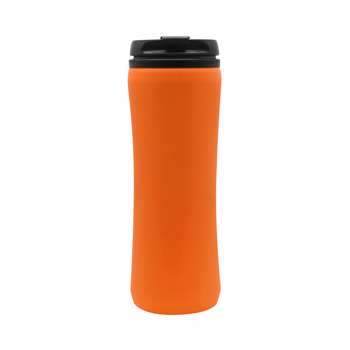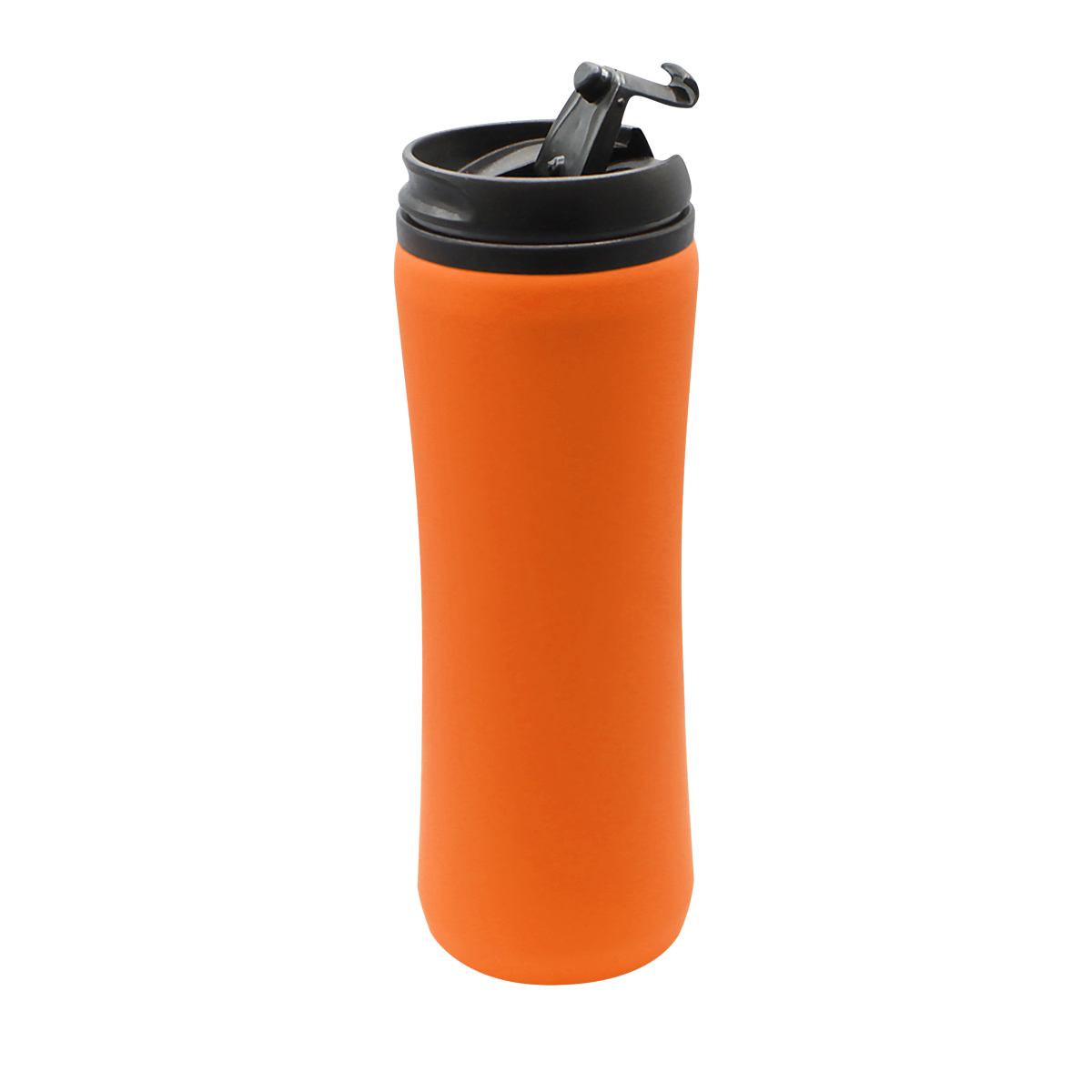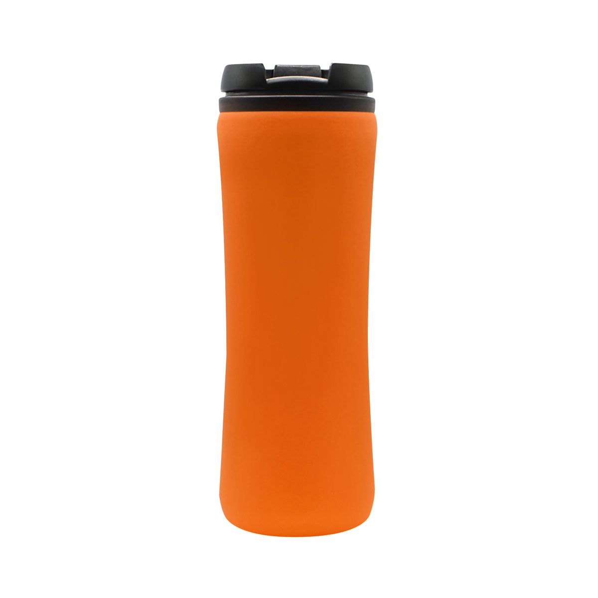 Термокружка изготовлена из нержавеющей стали с покрытием софт тач. Внутренняя колба сделана из пластика. Вакуумная конструкция. Откидной клапан позволяет пить, не снимая крышку, что помогает дольше сохранить начальную температуру напитка. Объем термокружки – 500 мл. Цвет максимально приближен к Pantone 021C.- Виды нанесений: Гравировка CO2-А2, Гравировка Круговая - CO2, УФ - DTF, УФ-печать А2