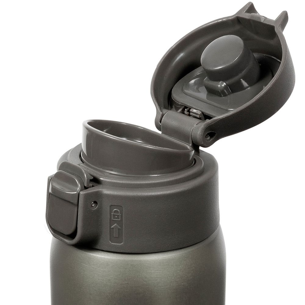Термокружку легко открыть одной рукой — особенно удобно в машине или на улице. Дополнительный фиксатор на крышке предотвратит случайное проливание напитка.
