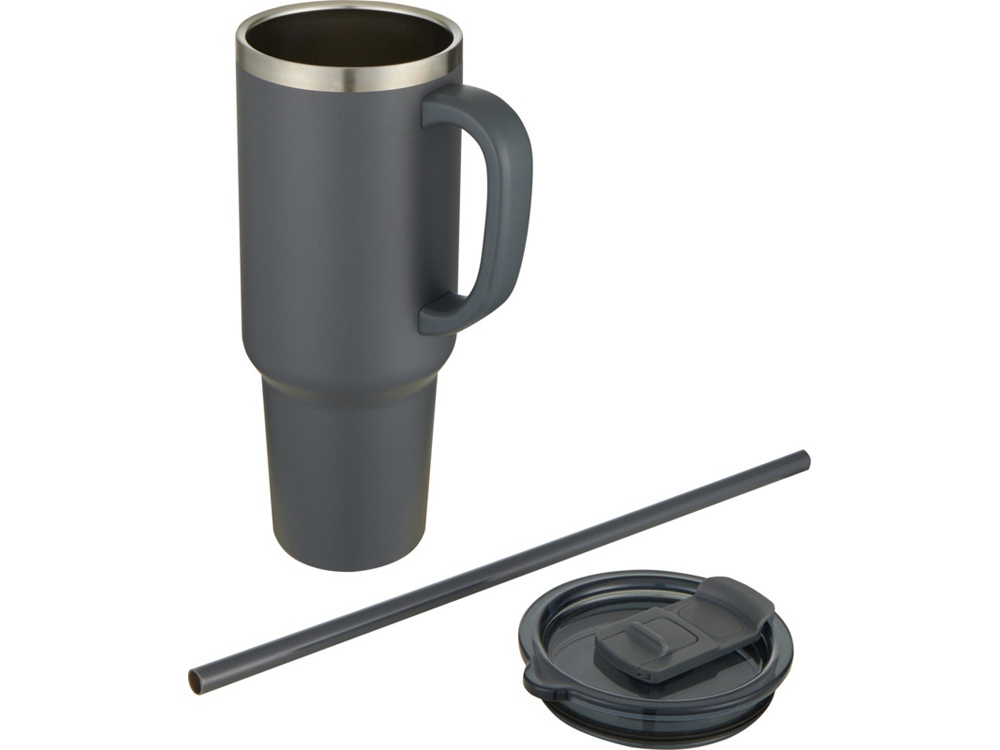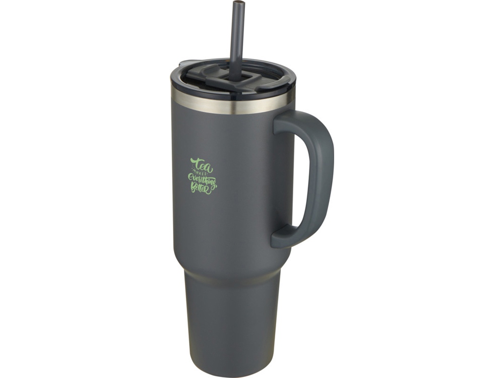 Кружка с двойными стенками из меди, сертифицированной RCS, и вакуумной изоляцией, изготовлена из нержавеющей стали, 91% которой подверглось вторичной переработке, сохраняет напитки холодными в течение как минимум 24 часов. Имеет соломинку Tritan и функцию слайдера крышки для предотвращения проливания. Прижимная поворотная крышка из 100% переработанного пластика надежно удерживает соломинку на месте и может легко поворачиваться, открывая отверстие для напитка. Прочное внешнее порошковое покрытие. Объем: 1200 мл. Только ручная мойка. Recycled stainless steel. -