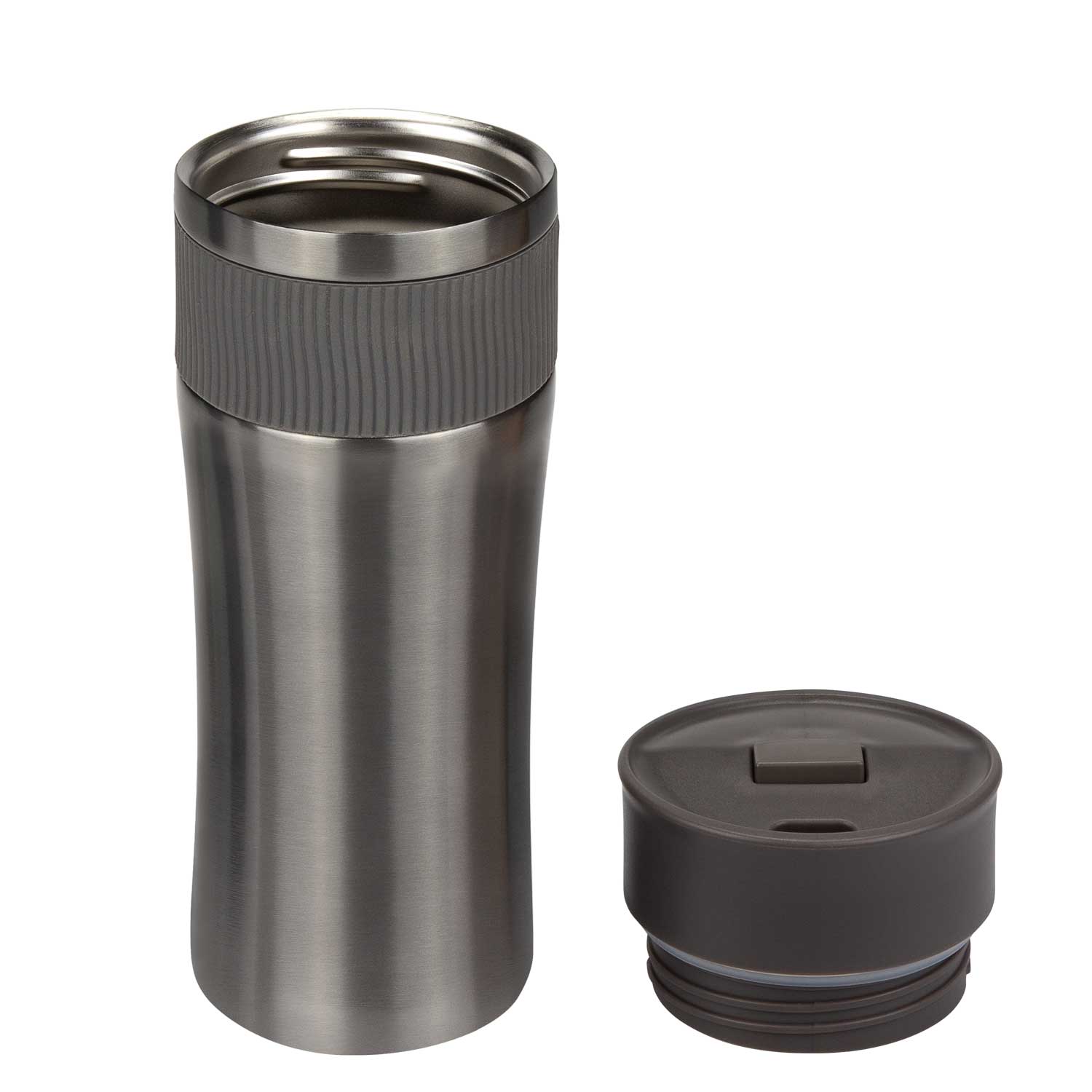 Термокружка с системой OneHand Open позволяет пользоваться кружкой одной рукой. Силиконовый манжет на корпусе не позволит кружке выскочить из руки в самый не подходящий момент.