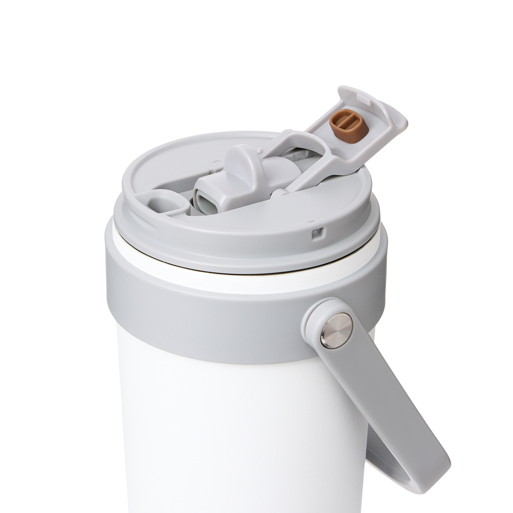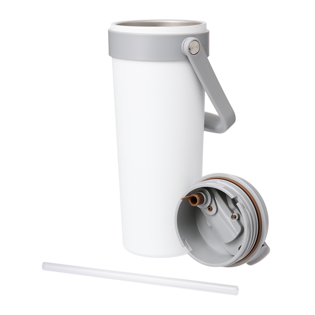 Крышка оснащена трубочкой для холодных напитков и классическим клапаном для горячих.  Функциональная завинчивающаяся крышка с удобной ручкой и надежным клапаном с силиконовым уплотнителем обеспечивает безопасность в использовании.