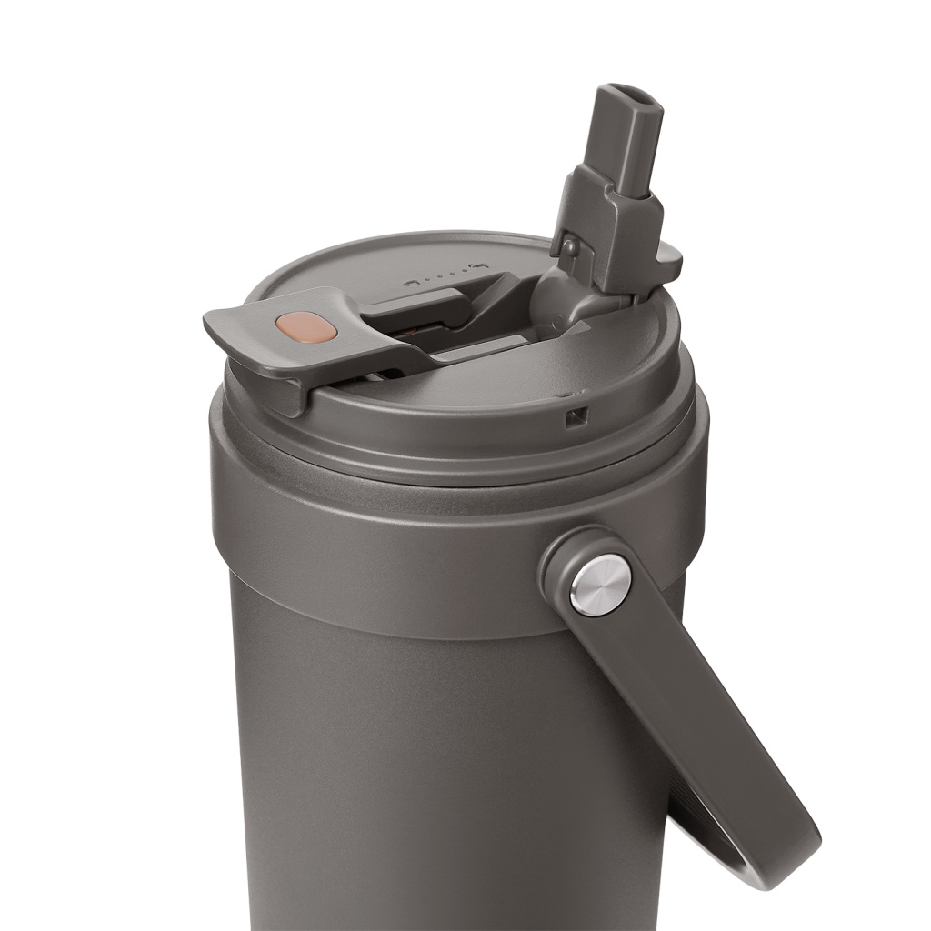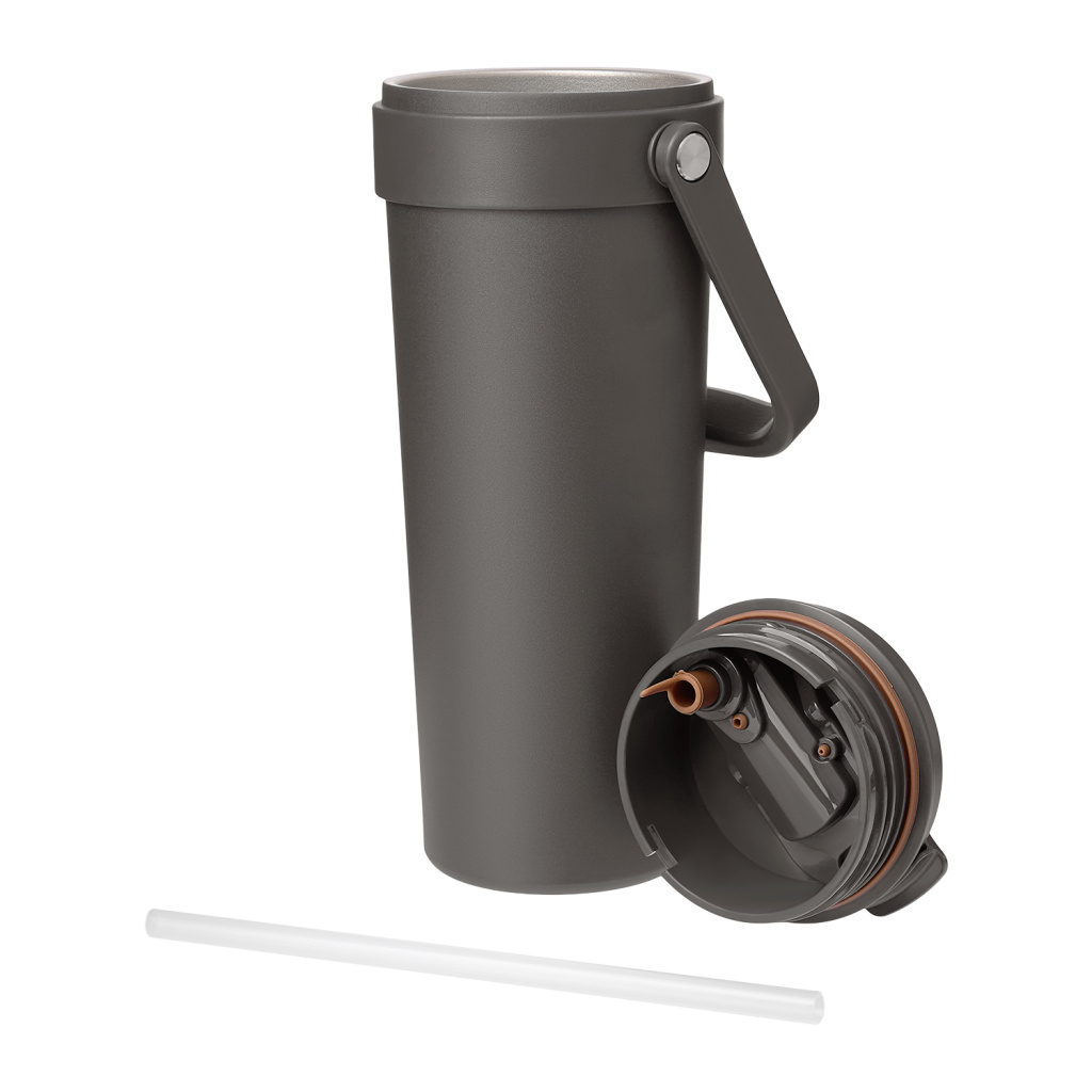 Крышка оснащена трубочкой для холодных напитков и классическим клапаном для горячих.  Функциональная завинчивающаяся крышка с удобной ручкой и надежным клапаном с силиконовым уплотнителем обеспечивает безопасность в использовании.