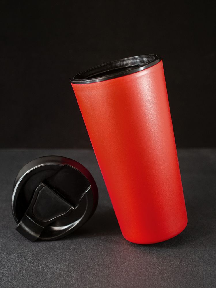 Двухслойная конструкция из пластика внутри и снаружи. Крышка с откидным клапаном для питья.