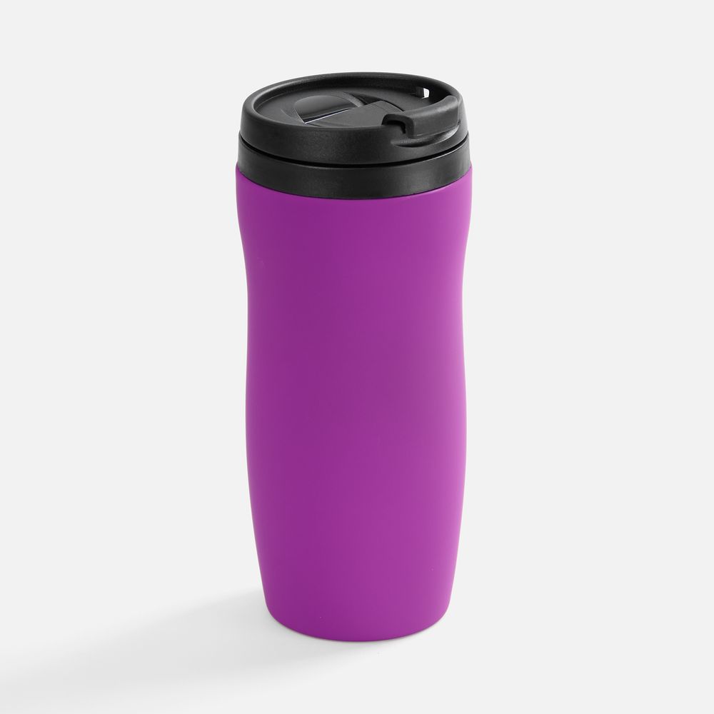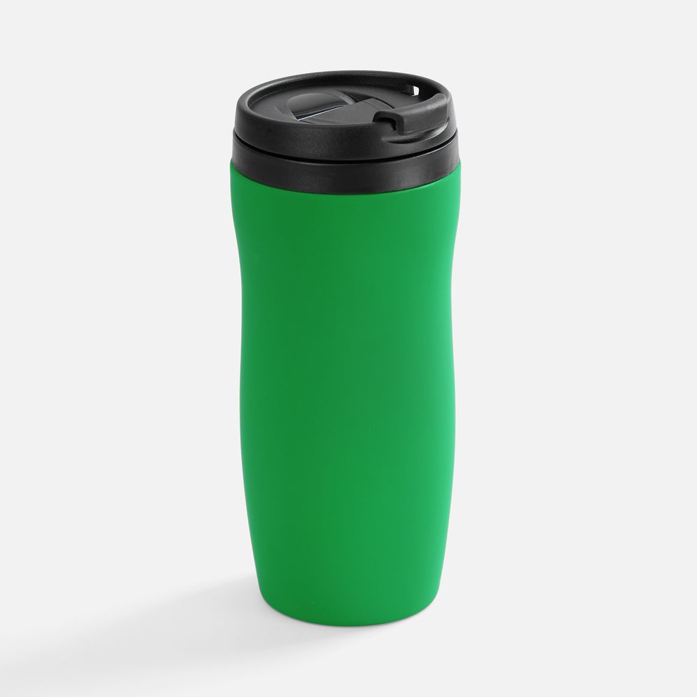 Двухслойная конструкция из нержавеющей стали снаружи и пищевого пластика внутри. Герметичная завинчивающаяся крышка с откидным клапаном для питья. Покрытие софт-тач. В отверстие в крышке можно вставить шнурок для удобного ношения стакана на руке. Шнурок в комплект не входит.