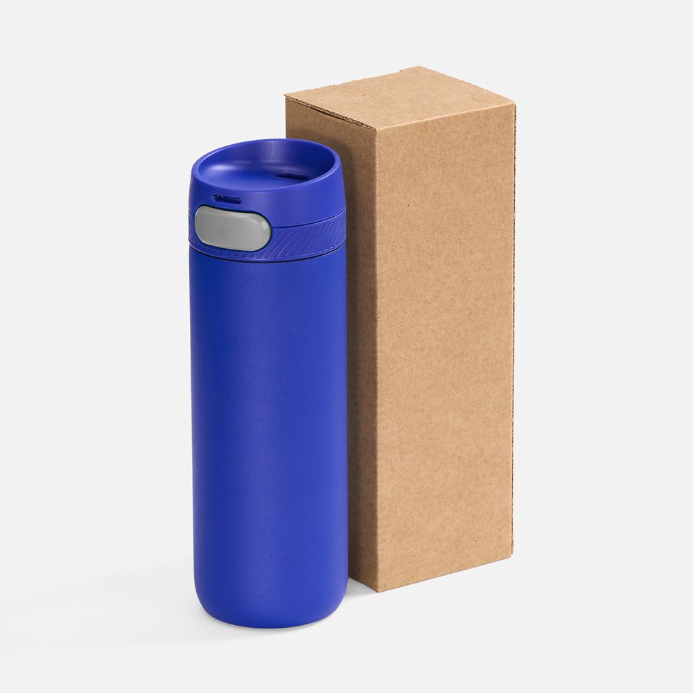 Термостакан X1 с цветной кнопкой, синий с серым