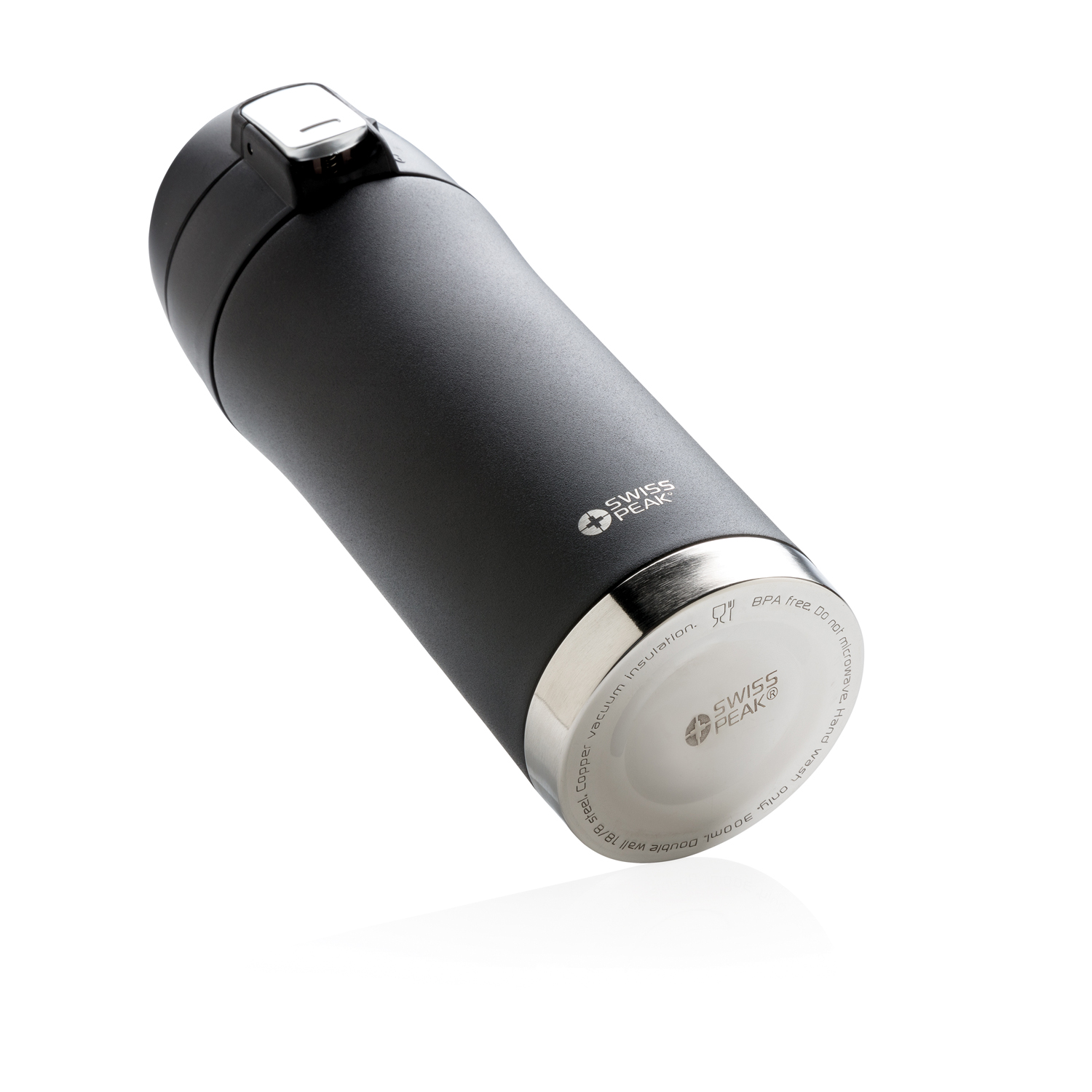 Коллекция Swiss Peak Elite с вакуумной изоляцией и двойными стенками из нержавеющей стали 18/8. Долговечное внешнее покрытие черного цвета, которое не облезет и не потрескается. Внутренние стенки термокружки покрыты медью, что обеспечивает максимальную проводимость для того, чтобы напитки сохраняли тепло до 8 часов или оставались холодными до 24 часов! Крышка с защитой от протекания, ручная мойка. Объем 300 мл.
