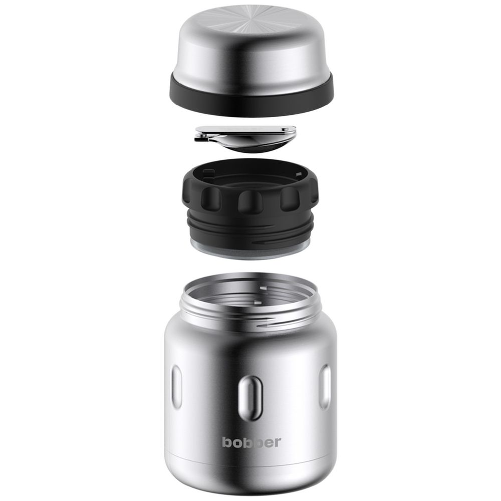 Стальной вакуумный термос для еды со складной ложкой. В нем любимые блюда не соприкасаются с пластиком и остаются горячими надолго.Емкость 470 мл.