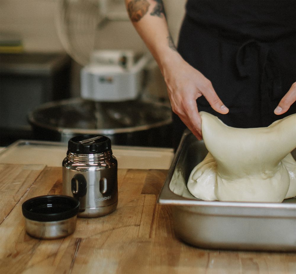 - Благодаря металлической вставке на пробке еда не контактирует с пластиком