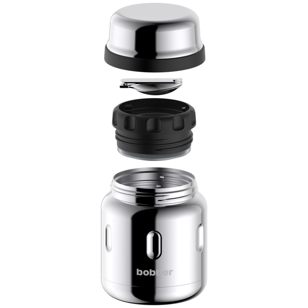 Стальной вакуумный термос для еды со складной ложкой. В нем любимые блюда не соприкасаются с пластиком и остаются горячими надолго.Емкость 470 мл.