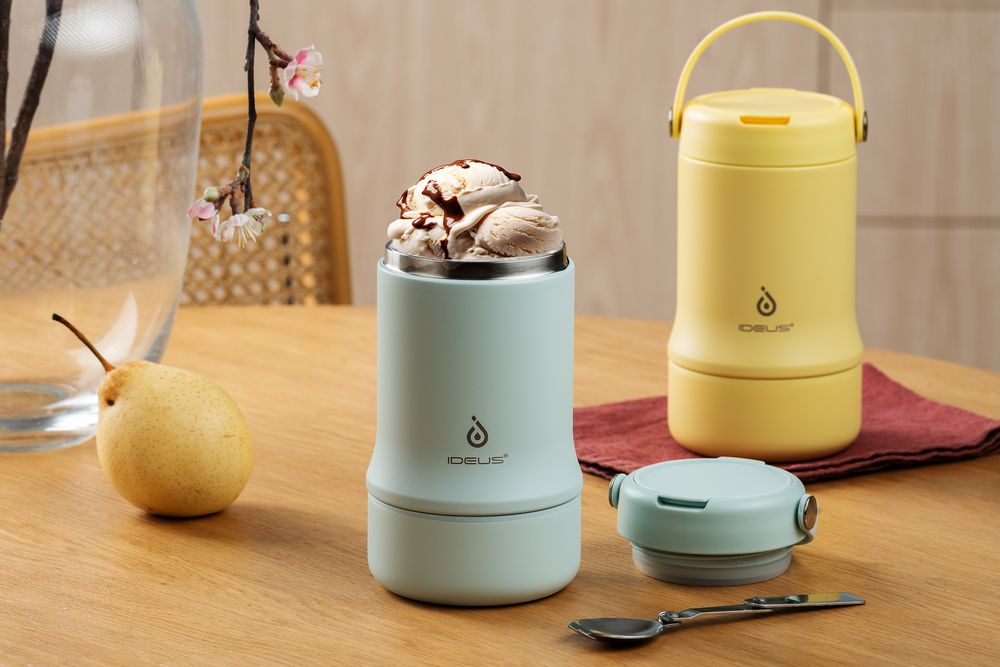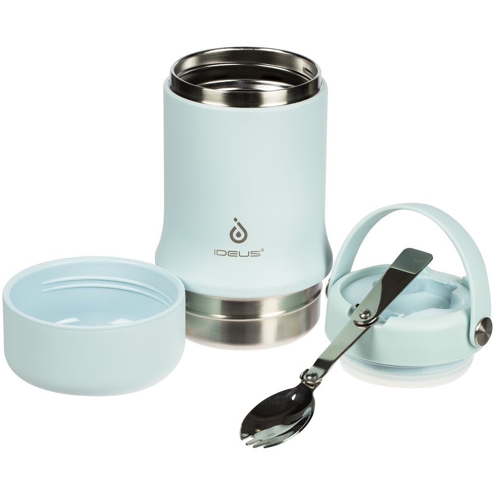 Tabenodo — универсальный многофункциональный термос для работы, школы, похода и путешествия. В компактном корпусе разместились ложка, тарелка и емкость для любимого блюда. Матовая поверхность приятна на ощупь, а силиконовая ручка удобна для переноски.
