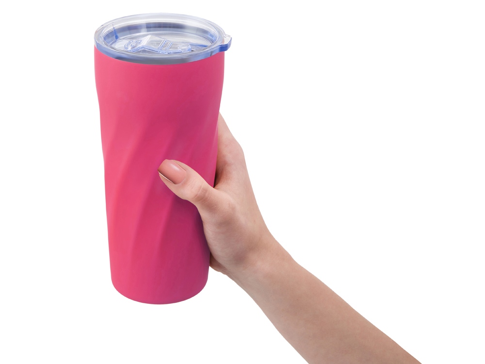 Термокружка изготовлена из высококачественной нержавеющей стали с двойными стенками и вакуумной изоляцией, что обеспечивает длительное сохранение температуры напитка. Внутренняя часть выполнена из стали 304, внешняя — из 201. Кружка оснащена прозрачной крышкой, а ее поверхность покрыта приятным на ощупь soft-touch материалом.