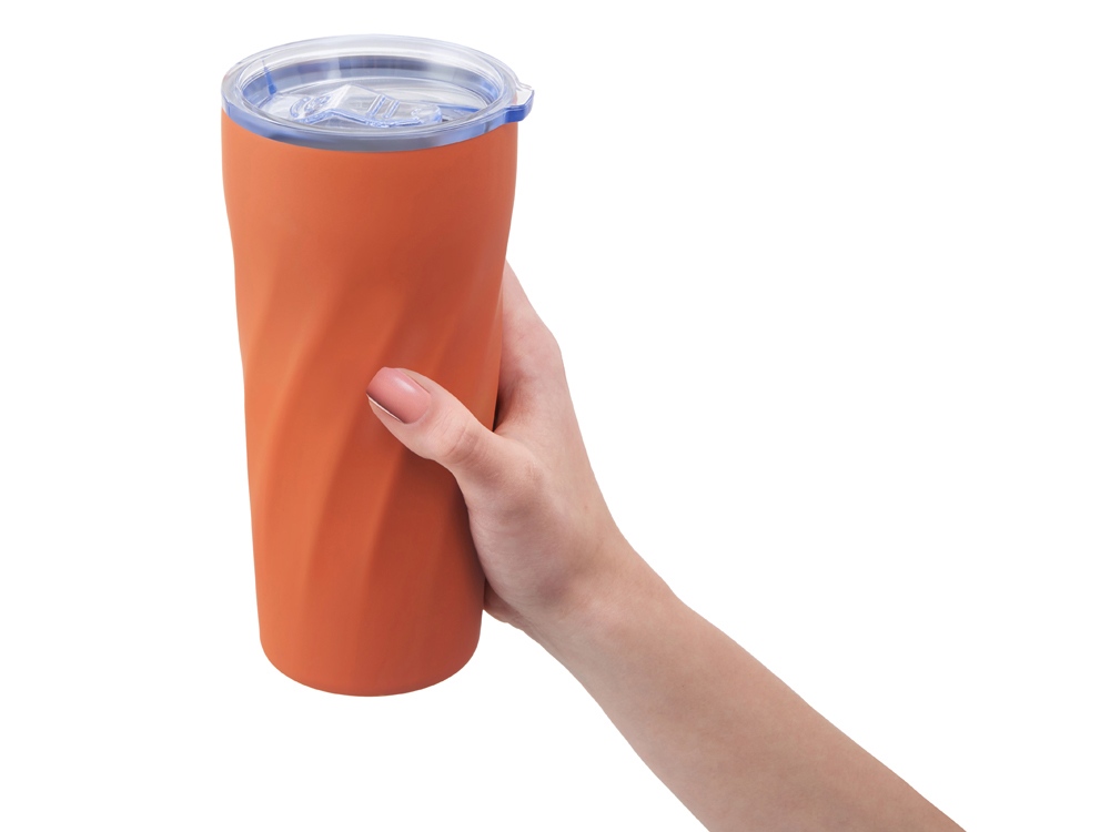 Термокружка изготовлена из высококачественной нержавеющей стали с двойными стенками и вакуумной изоляцией, что обеспечивает длительное сохранение температуры напитка. Внутренняя часть выполнена из стали 304, внешняя — из 201. Кружка оснащена прозрачной крышкой, а ее поверхность покрыта приятным на ощупь soft-touch материалом.