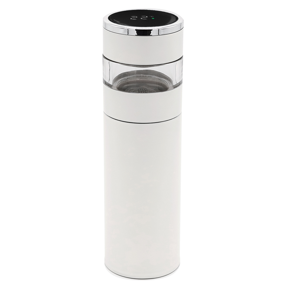 Умный термос с инфьюзером и светодиодным дисплеем не оставит равнодушным никого вокруг! Необычный дизайн, удобная форма, качественное покрытие — это все он, термос Amber! Двойные стенки из нержавеющей стали, сохраняющие ваш напиток горячим или холодным продолжительное время. Внутренняя стенка термоса изготовлена из пищевой нержавеющей стали марки 304. Инфьюзер (ситечко из нержавеющей стали) задерживает чайные листья в верхней части, не пропуская вниз. Силиконовое дно предотвращает скольжение термоса на поверхности. Дисплей показывает температуру напитка в градусах Цельсия (℃). Элемент питания CR2032 в крышке несъемный, расчетное приблизительное время работы до 1000 дней или 50 000 нажатий. При использовании просто слегка коснитесь светодиодного дисплея, он сразу же отобразит температуру напитка в термосе. Обратите внимание, не нажимайте на экран слишком сильно. Умный термос подходит для большинства подстаканников и легко помещается в сумку. Колба герметична и безопасна в сумке во время прогулки. 450 мл - общий объём термоса с учётом колбы для заваривания. Объём нижней колбы - 350 мл. Термос Amber - идеальный выбор для путешествий и прогулок, также идеально подходит для использования на работе, офисе или дома. - качественные и безопасные материалы - двойные стенки из нержавеющей стали - сенсорный ЖК-дисплей - информация о температуре жидкости - инфьюзер для заваривания чая - отличные теплоизоляционные свойства - эргономичный дизайн - удобная форма- Виды нанесений: Гравировка-А2 (оптоволоконный лазер), Гравировка Круговая (оптоволоконный лазер), УФ-печать А2, Круговая УФ-печать, УФ - DTF, УФ-Лак, УФ-Цвет+Лак