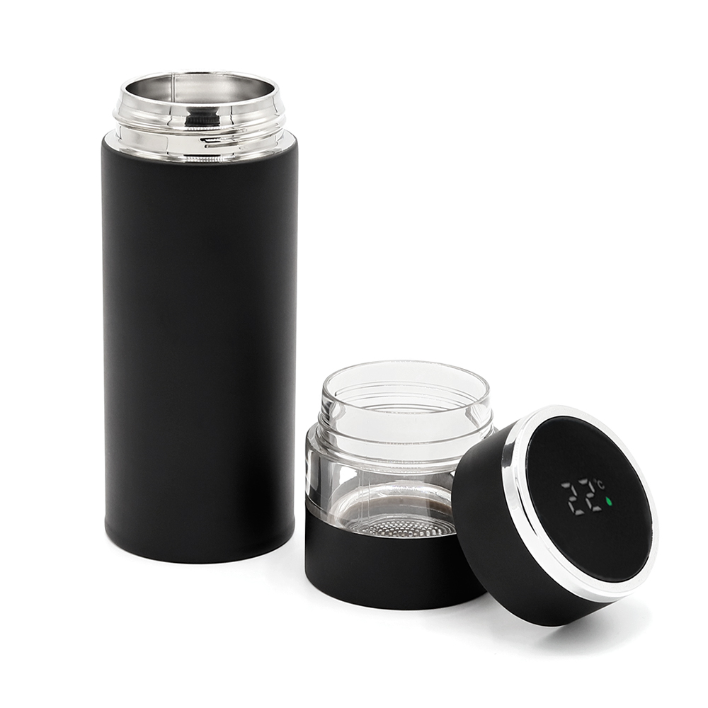 Умный термос с инфьюзером и светодиодным дисплеем не оставит равнодушным никого вокруг! Необычный дизайн, удобная форма, качественное покрытие — это все он, термос Amber! Двойные стенки из нержавеющей стали, сохраняющие ваш напиток горячим или холодным продолжительное время. Внутренняя стенка термоса изготовлена из пищевой нержавеющей стали марки 304. Инфьюзер (ситечко из нержавеющей стали) задерживает чайные листья в верхней части, не пропуская вниз. Силиконовое дно предотвращает скольжение термоса на поверхности. Дисплей показывает температуру напитка в градусах Цельсия (℃). Элемент питания CR2032 в крышке несъемный, расчетное приблизительное время работы до 1000 дней или 50 000 нажатий. При использовании просто слегка коснитесь светодиодного дисплея, он сразу же отобразит температуру напитка в термосе. Обратите внимание, не нажимайте на экран слишком сильно. Умный термос подходит для большинства подстаканников и легко помещается в сумку. Колба герметична и безопасна в сумке во время прогулки. 450 мл - общий объём термоса с учётом колбы для заваривания. Объём нижней колбы - 350 мл. Термос Amber - идеальный выбор для путешествий и прогулок, также идеально подходит для использования на работе, офисе или дома. - качественные и безопасные материалы - двойные стенки из нержавеющей стали - сенсорный ЖК-дисплей - информация о температуре жидкости - инфьюзер для заваривания чая - отличные теплоизоляционные свойства - эргономичный дизайн - удобная форма- Виды нанесений: Гравировка-А2 (оптоволоконный лазер), Гравировка Круговая (оптоволоконный лазер), УФ-печать А2, Круговая УФ-печать, УФ - DTF, УФ-Лак, УФ-Цвет+Лак