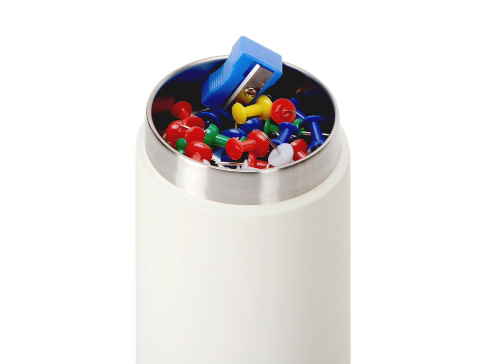 Термос-клатч с секретным отделением на донышке, в которое вы можете поместить нужные вам мелочи – например, кольцо или маленькую связку ключей. Термос удобно захватывается при помощи ручки на манер сумочки-клатча.