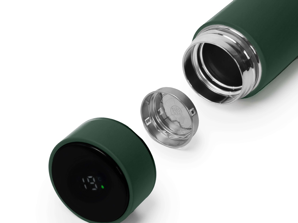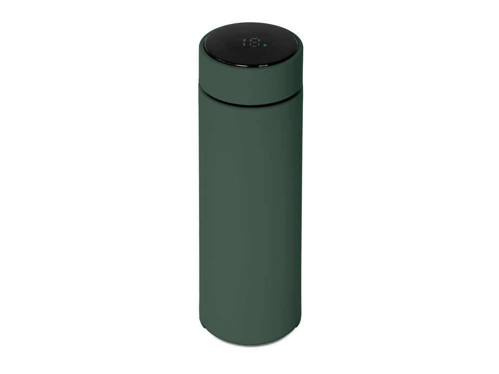 Термос из нержавеющей стали, покрытый цветным soft touch, с крышкой, в которой встроен термометр и LED дисплей, показывающий температуру внутри термоса. Объем: 500 мл. Упаковка: каждый термос в крафт коробке. -