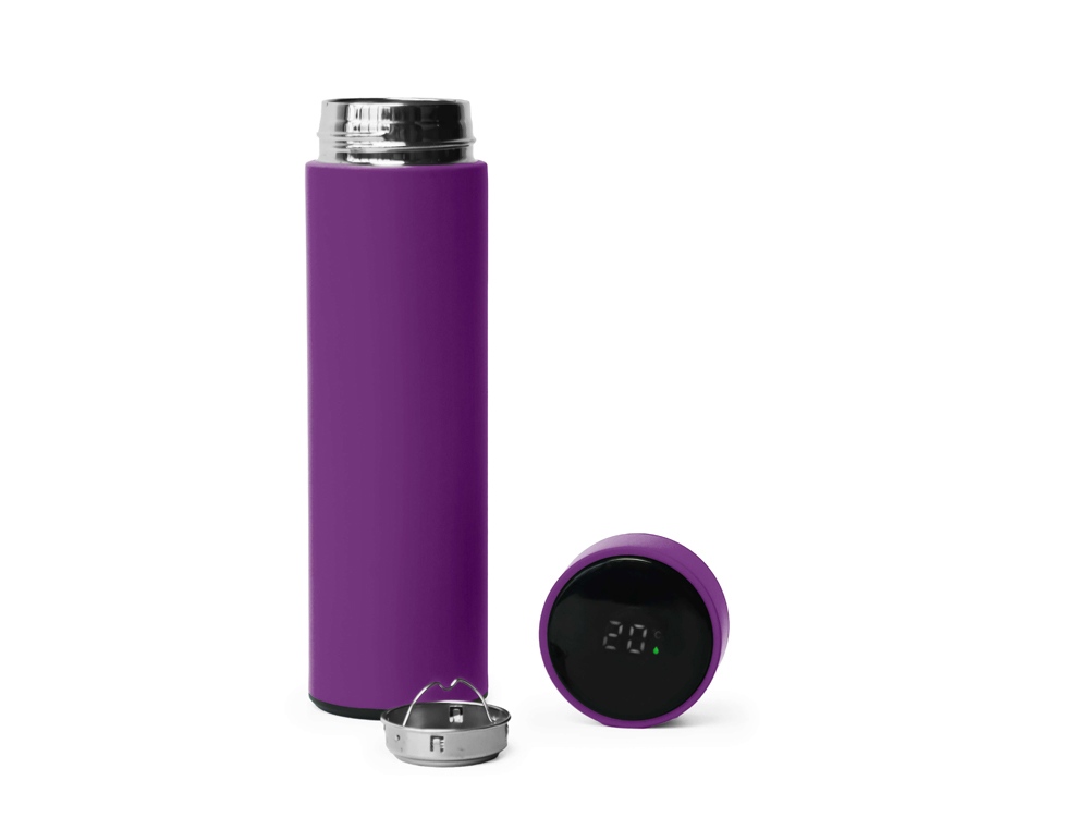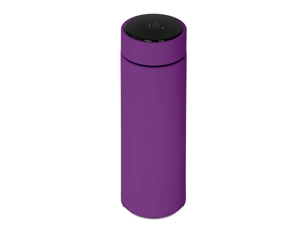 Термос из нержавеющей стали, покрытый цветным soft touch, с крышкой, в которой встроен термометр и LED дисплей, показывающий температуру внутри термоса. Объем: 500 мл. Упаковка: каждый термос в крафт коробке. -