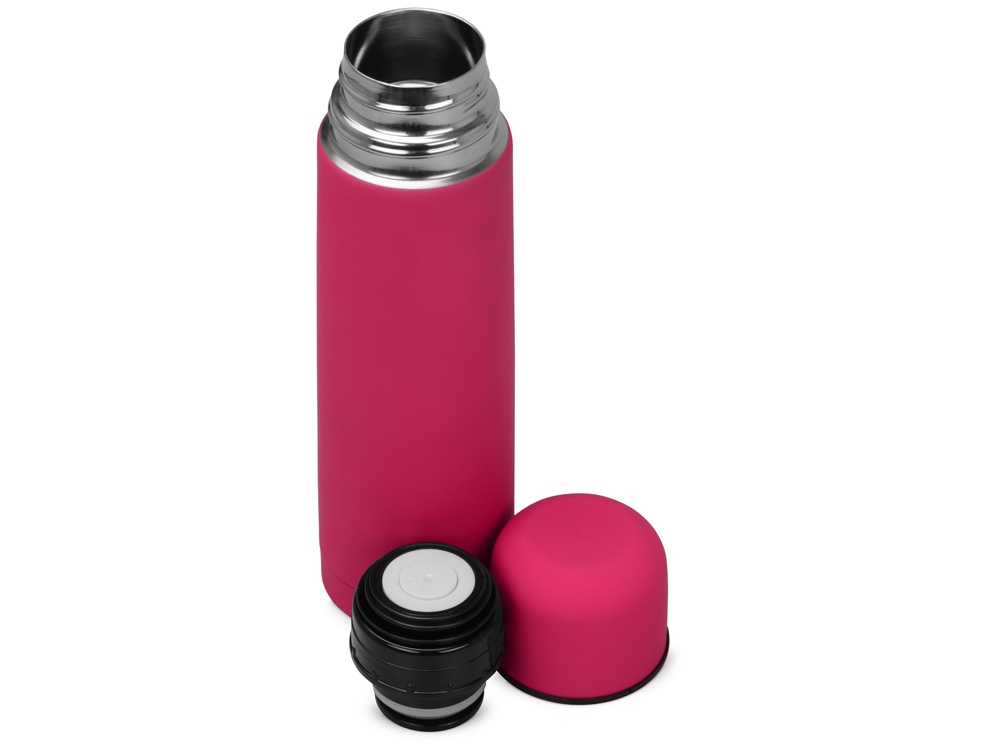 Универсальный термос с мягким прорезиненным покрытием софт-тач. Удобно и приятно держать в руке. Благодаря вакуумной изоляции и двойным стенкам сохраняет напитки горячими 24 часа. Герметичный клапан открывается и закрывается по легкому нажатию. Термос поставляется в дорожном чехле из искусственной кожи. -