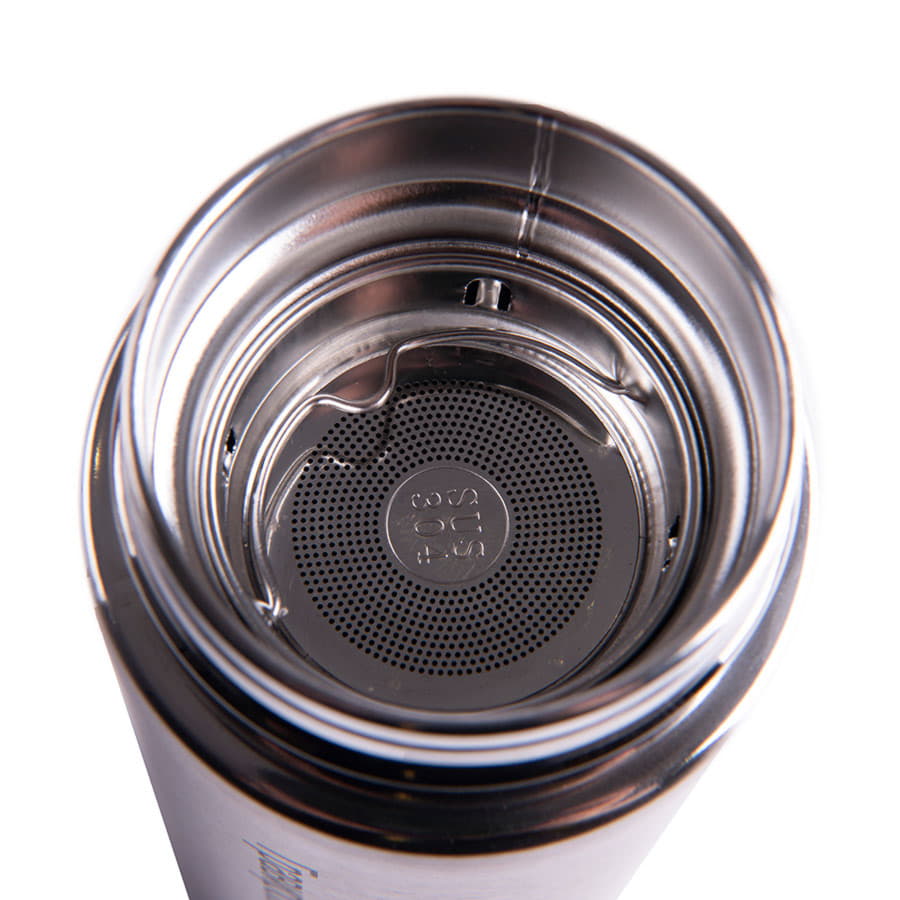 Термос из нержавеющей стали емкостью 420 мл с датчиком температуры и сенсорным экраном, встроенным в крышку. Двойные стенки отлично сохраняют температуру напитка. Термос имеет навинчивающуюся крышку и ситечко. Индивидуальная упаковка - белая картонная коробка с изображением продукта. Батарейка в комплекте. -