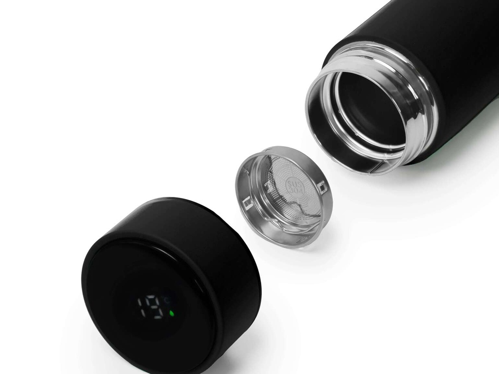 Термос из нержавеющей стали, покрытый цветным soft touch, с крышкой, в которой встроен термометр и LED дисплей, показывающий температуру внутри термоса. Объем: 500 мл. Упаковка: каждый термос в крафт коробке. -