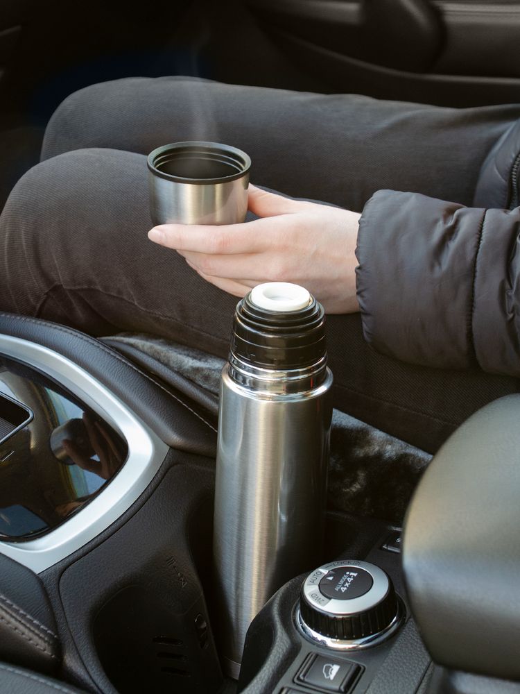 Двухслойная вакуумная конструкция из нержавеющей стали с завинчивающейся пробкой с клапаном.