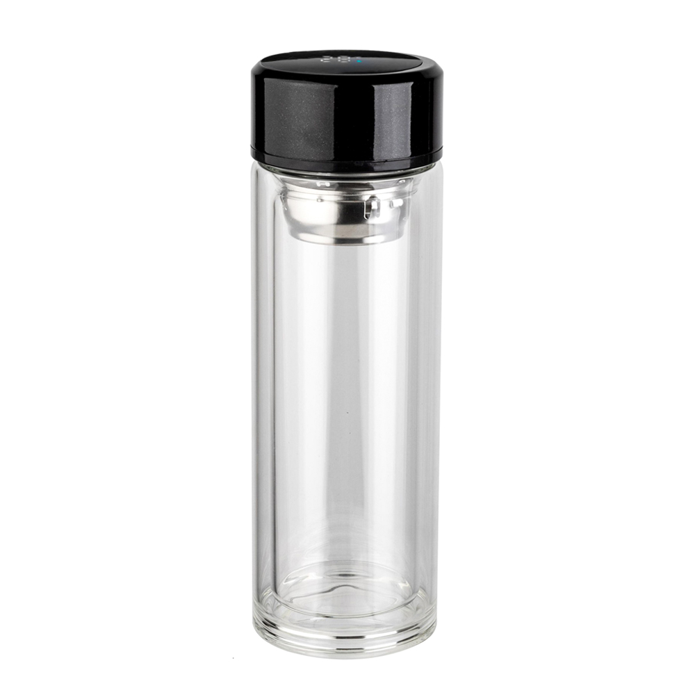Светодиодный дисплей укажет температурный режим содержимого напитка. Емкость батареи дисплея рассчитана на 78000 касаний. Объем бутылки 350 мл. Термос стеклянный c дисплеем Marcus выполнен из сверхпрочного боросиликатного закаленного стекла. Основное преимущество материала в том, что не разобьется и не обожжет горячим напитком Ваши руки. Внутри бутылки находится инфьюзер, который упростит процесс заваривания чая. Просто засыпьте заварку в инфьюзер, залейте кипяток в нижнюю часть бутылки, соедините, напиток готов. Оптимальная температура для заваривания 80-85С. Стеклянный термос является довольно безопасным при соблюдении некоторых правил эксплуатации и хранения: - Перед использованием обязательно убедитесь в отсутствии трещин и сколов на корпусе термоса – для этого проведите визуальный беглый осмотр, допускается встряхивание пустого термоса, чтобы убедиться в отсутствии трещин и расслоения в стеклянных колбах. – Наполняйте термос водой не горячее 80-85 градусов, чтобы предотвратить возникновение пара, который может привести к разрушению колбы. – Открывайте наполненный термос медленно. – Следите за герметичностью крышки и корпуса, в случае обнаружения протечки, термос использовать нельзя; – Стеклянный термос безопасен при бережном обращении, однако, если он разобьется, осколки могут нанести вред, поэтому рекомендуется хранить и переносить термос в защитном пакете или контейнере. Соблюдая эти простые правила, вы обезопасите себя и своих близких от неприятных ситуаций, связанных с использованием стеклянного термоса.- Виды нанесений: УФ-печать А2, Тампопечать большая, Круговая УФ-печать, УФ - DTF, УФ-Лак, УФ-Цвет+Лак