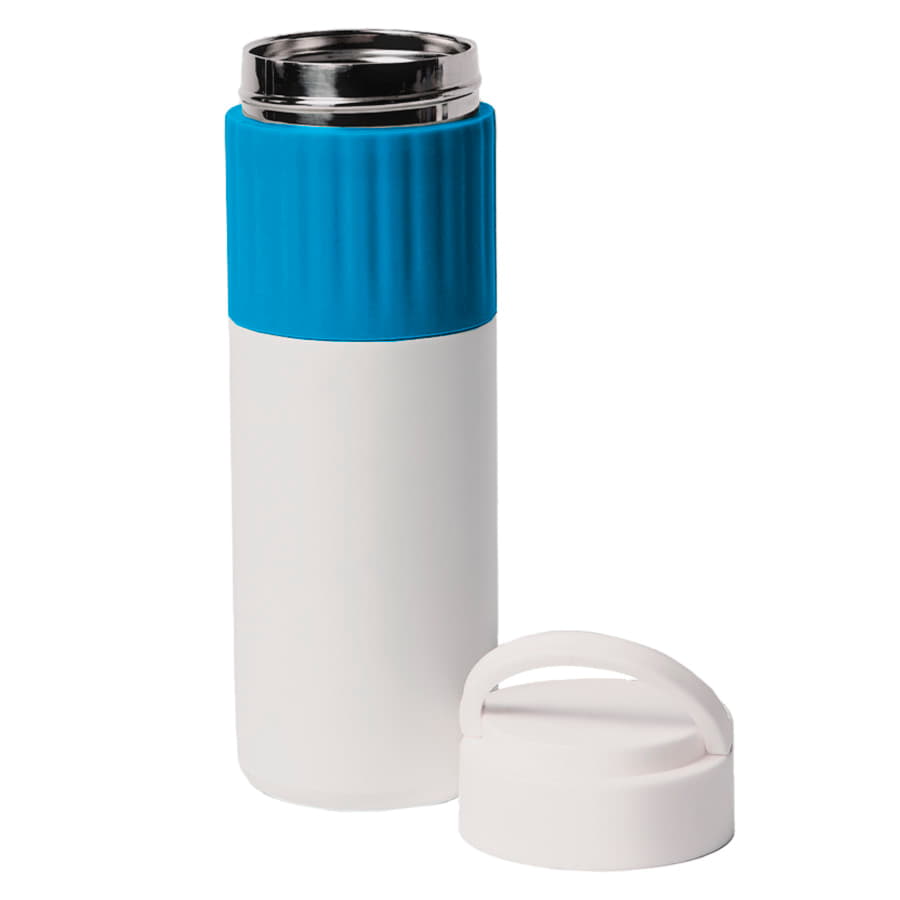 Термос TURBO с двойными стальными стенкамиСтильный белый матовый корпус термоса с цветной силиконовой манжетойДержатель на крышке для удобства переноскиГерметичная навинчивающаяся крышка не даст напитку пролитьсяСохраняет температуру жидкости до 8 часов в зависимости от температуры окружающей среды.Цвет близкий к Pantone 298-299CИндивидуальная упаковка из крафтового картона -