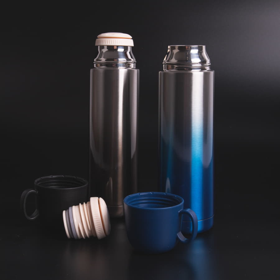 Вакуумный термос Gradient с двойными стальными стенками. Очень удобная форма крышки-чашки. Отделка - плавный градиент из серебряного в угольно-черный цвет. Сохраняет тепло до 12 часов в зависимости от температуры окружающей среды. -