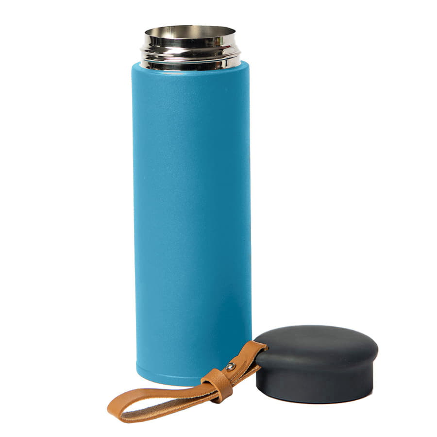 Вакуумный термос STRIPE с двойными стальными стенкамиСтильный матовый корпус термоса из нержавеющей стали (марка 304)Удобный ремешок из искусственной кожи, подходит для персонализацииГерметичная крышка с покрытием soft-touch не даст напитку пролитьсяСохраняет температуру жидкости до 12 часов в зависимости от температуры окружающей среды.Цвет близкий к Pantone 299CИндивидуальная упаковка из крафтового картона -
