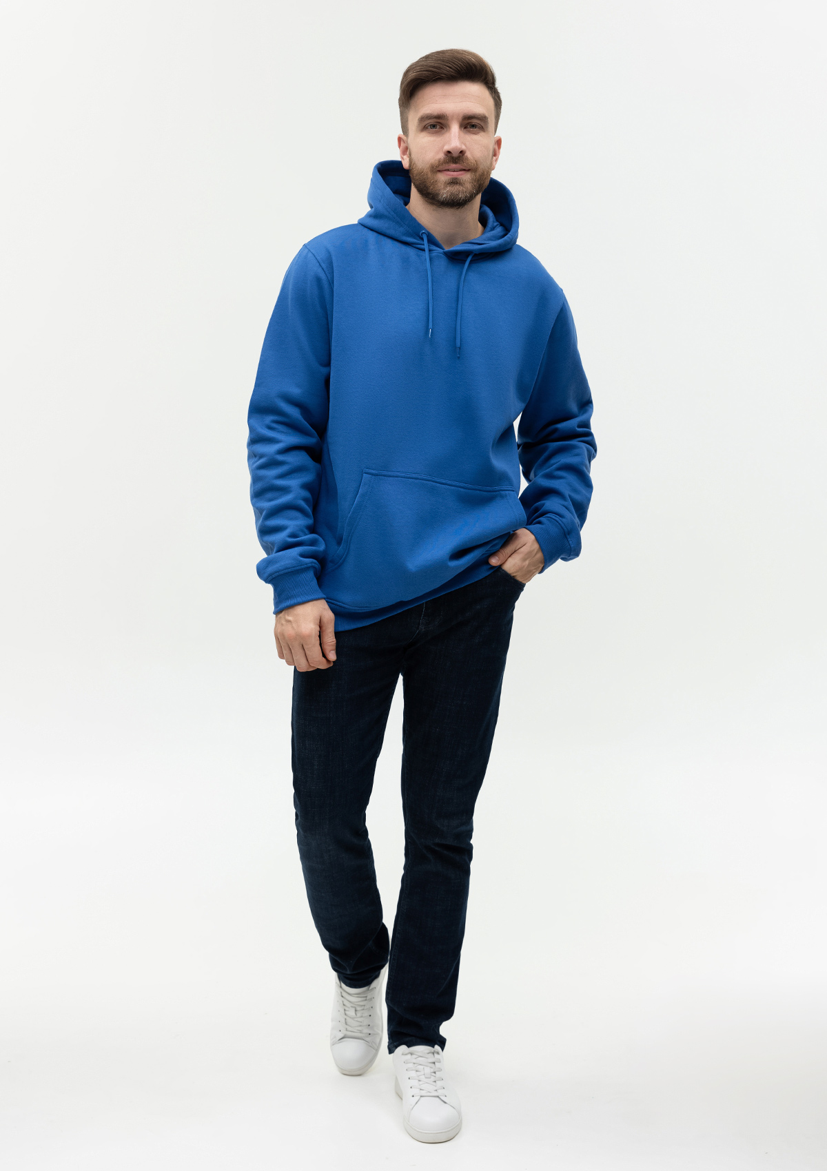 Толстовка унисекс прямого силуэта с капюшоном, втачным рукавом и карманом-кенгуру. Капюшон дополнен шнурком для регулирования прилегания, манжет и низ изделия оформлены широкой эластичной резинкой. Возможно несколько вариантов исполнения толстовки.