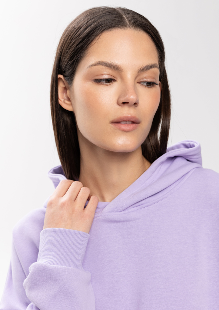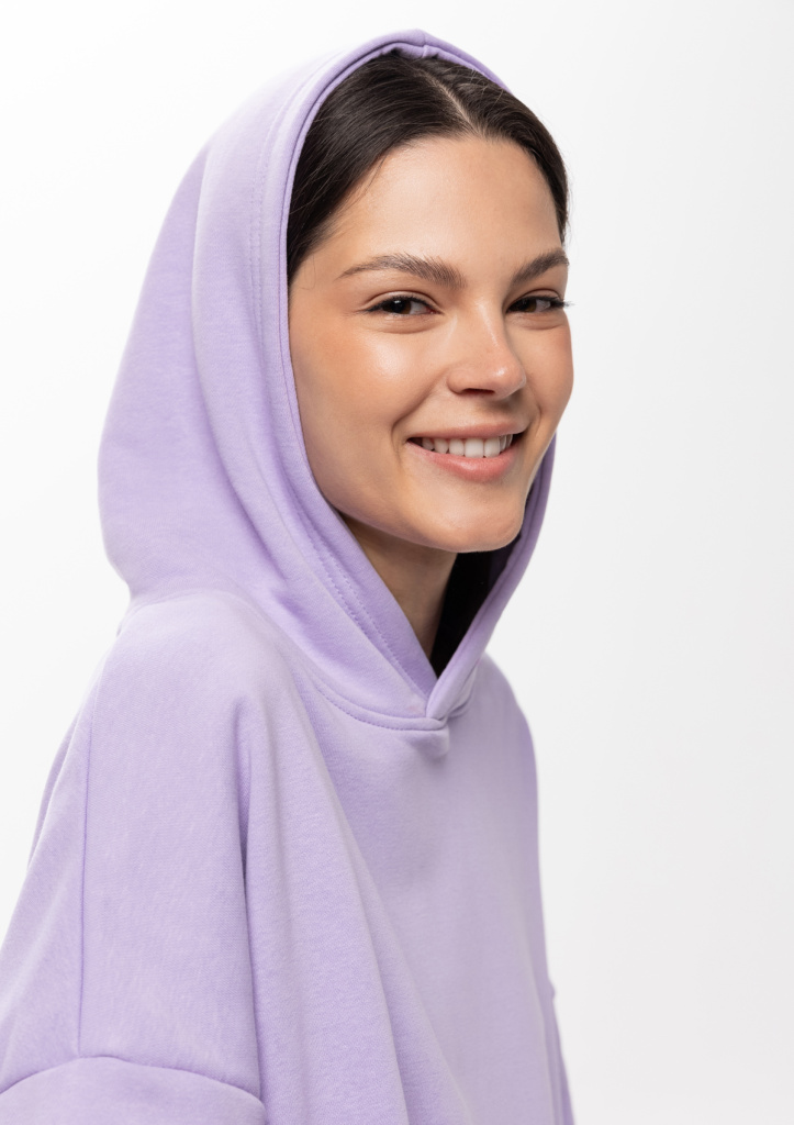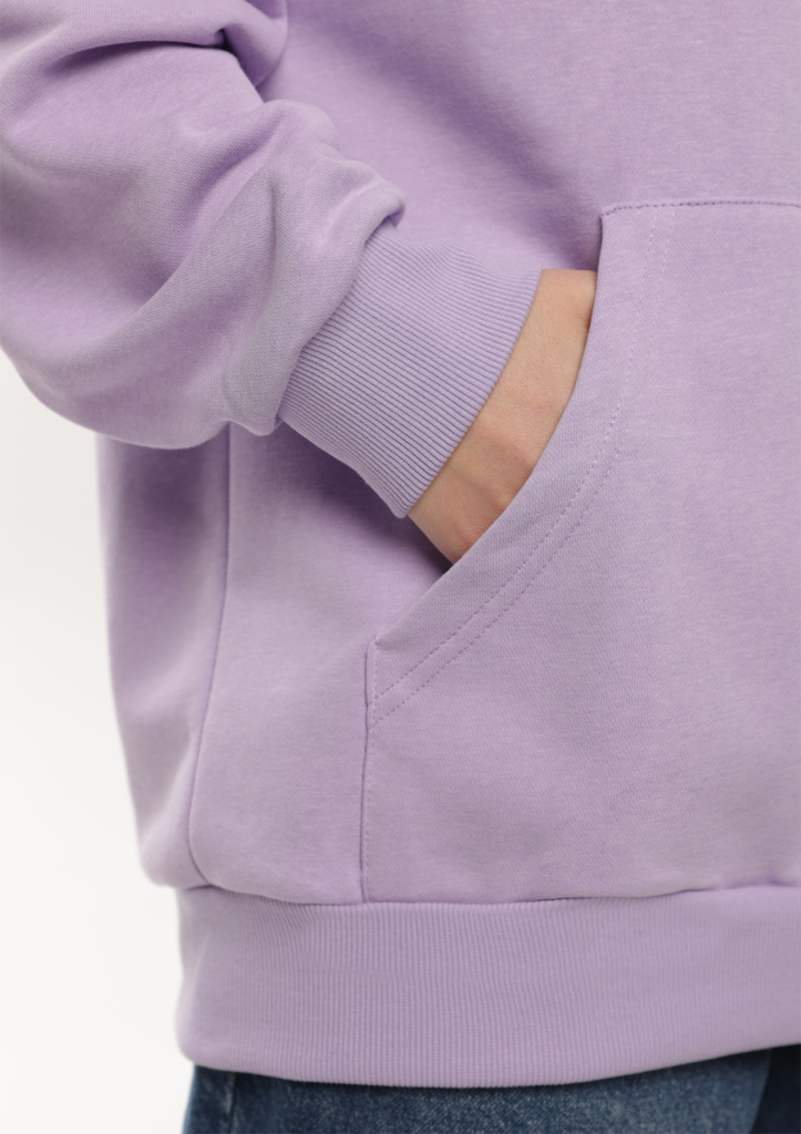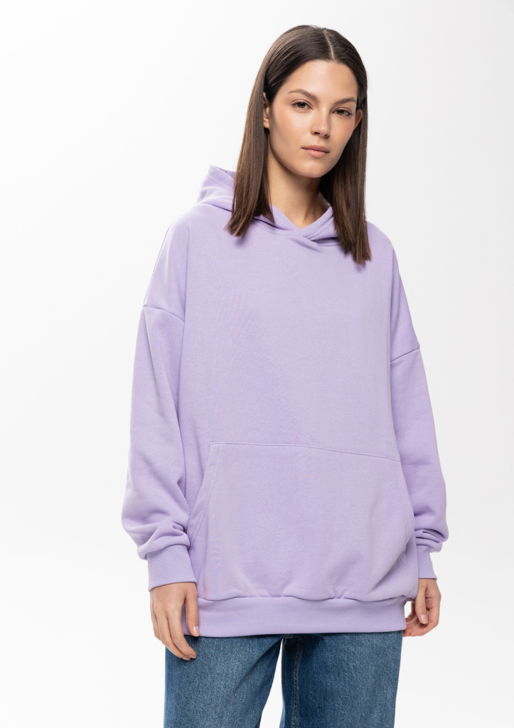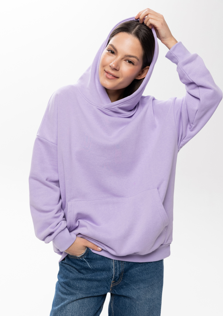 Универсальная толстовка свободного силуэта с капюшоном комфортной глубины, спущенной линией плеча и глубоким карманом-кенгуру. Манжет и низ изделия оформлены широкой эластичной резинкой.