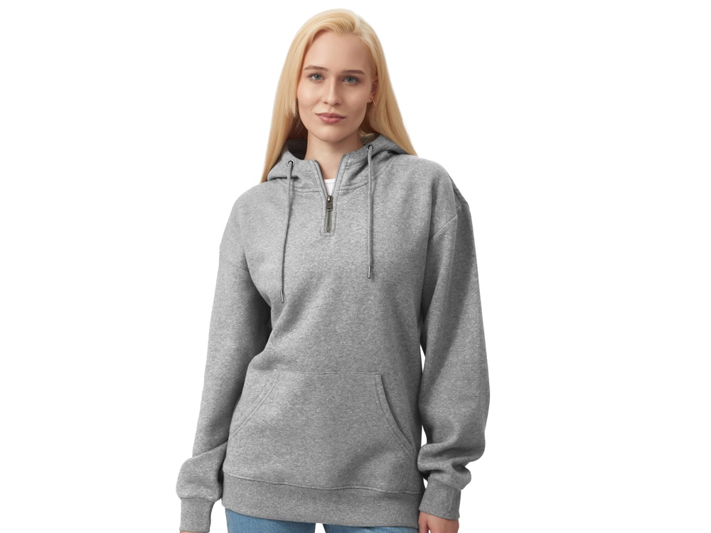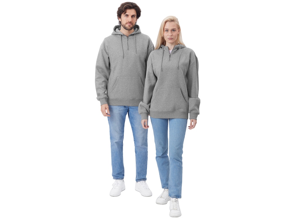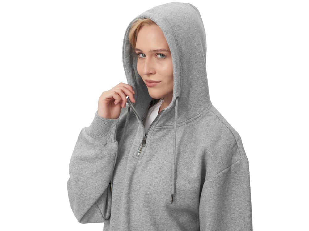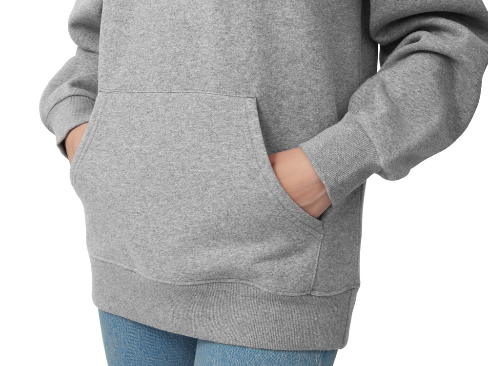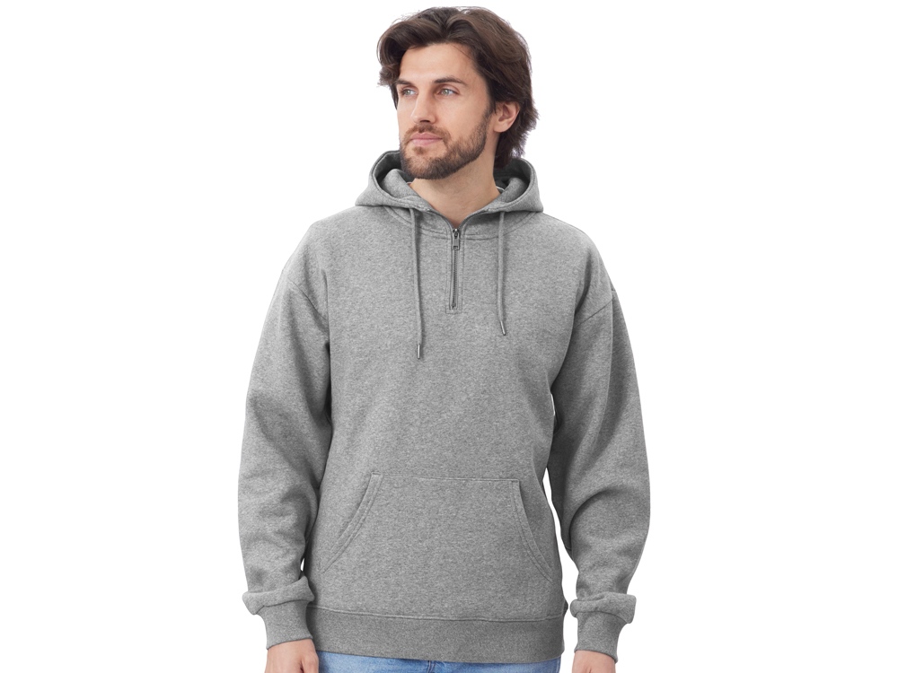 Худи с капюшоном ворот на молнии. Шнур в капюшоне с металлическими наконечниками. Отделка горловины спинки внутри тесьмой, Риб 2х2 по низу изделия и манжетам. Удобный карман кенгуру. -