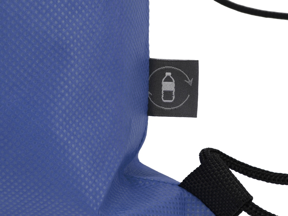 Рюкзак-мешок изготовлен из переработанного пластика. Затягивается с помощью двух боковых шнурков. -