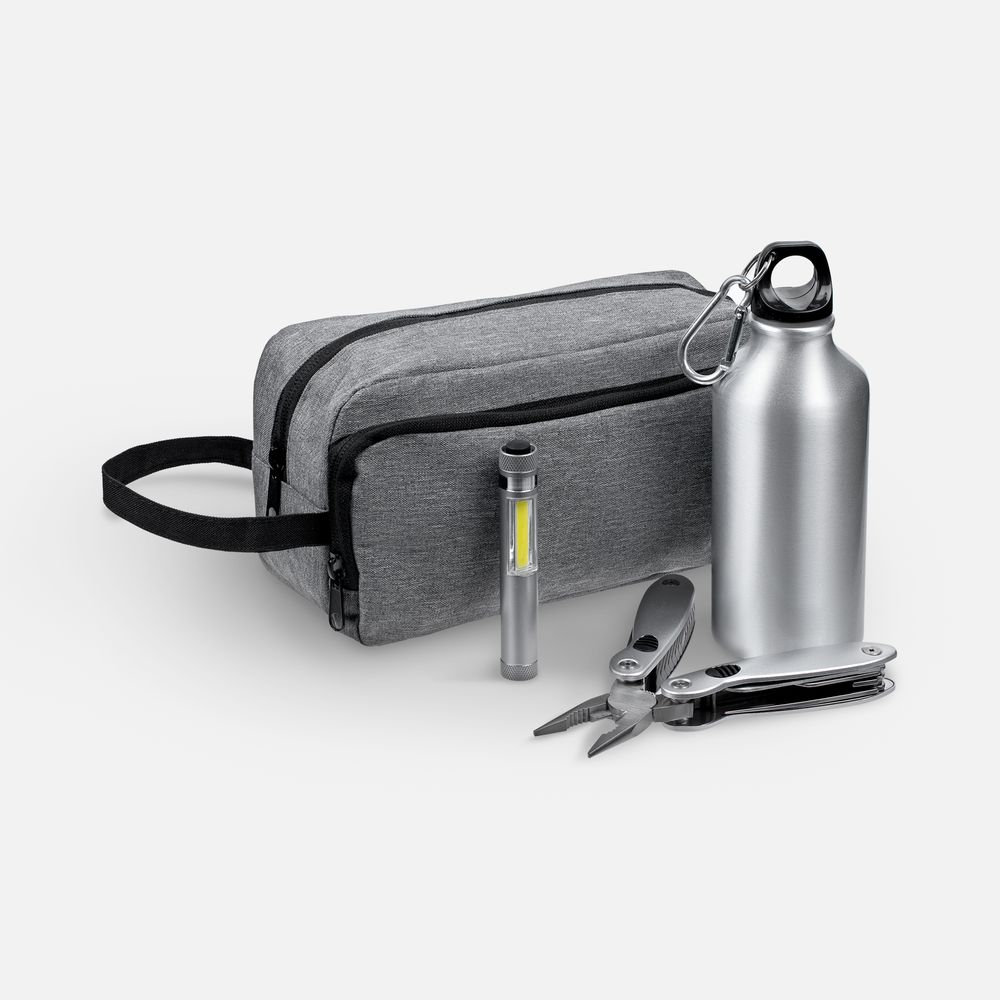мультитул, фонарик, бутылка - алюминий; полиэстер