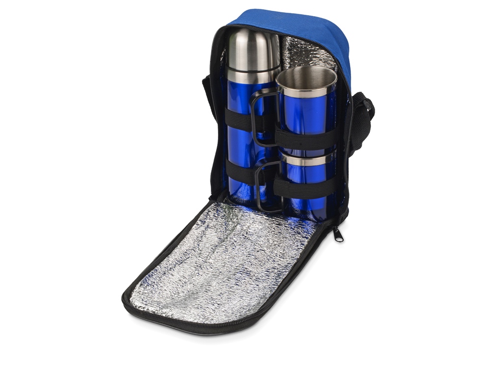 Набор состоит из термоса на 550 мл и двух кружек на 220 мл, которые складываются в удобную дорожную сумку с термоизоляцией. Термос поможет сохранить ваши напитки теплыми в течение 4 часов. Набор придется весьма кстати во время длительных прогулок, походов и даже отдыха на даче. -