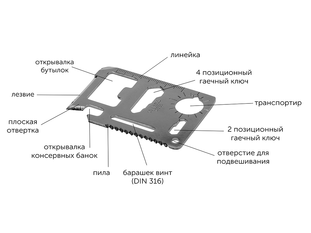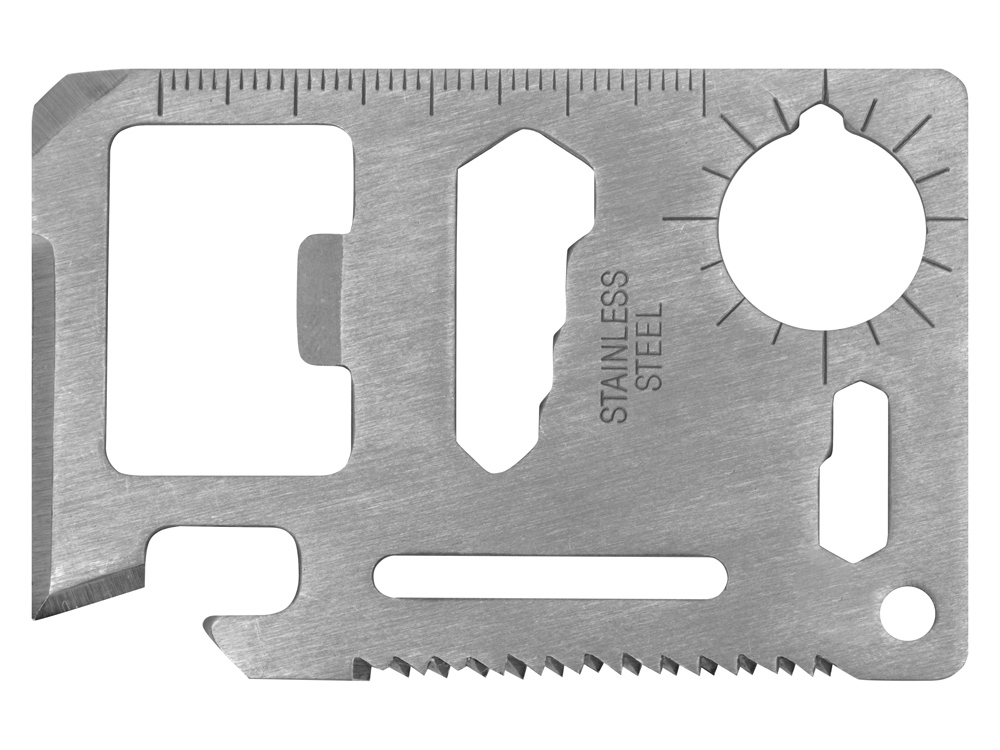 карточка мультитул - нержавеющая сталь, фонарик - алюминий, компас - пластик, мультитул - углеродистая сталь, дождевик - полиэтилен, чехол - нейлон 600 и 300D